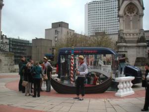 As I walked by the fountain by the central library I had to do a double take. There, under the clock, was a gondola and four gondoliers, in front of a make believe scene fromVenice. They were offering photos set against this backdrop. It brought home today’s lesson visually. Looking at it close up you could believe you were inVenice, pull back and the full picture becomes visible.